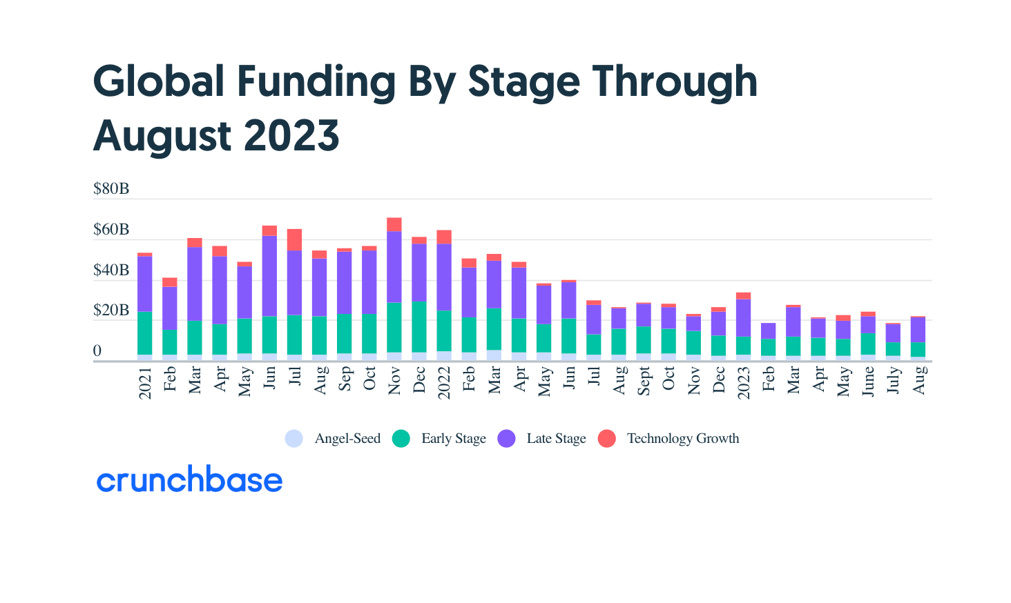Last month’s startup funding total was on par with what’s emerged as the new normal for venture capital. So far in 2023, funding has averaged just over $23 billion per month as active investors have cut back their funding pace at each stage.