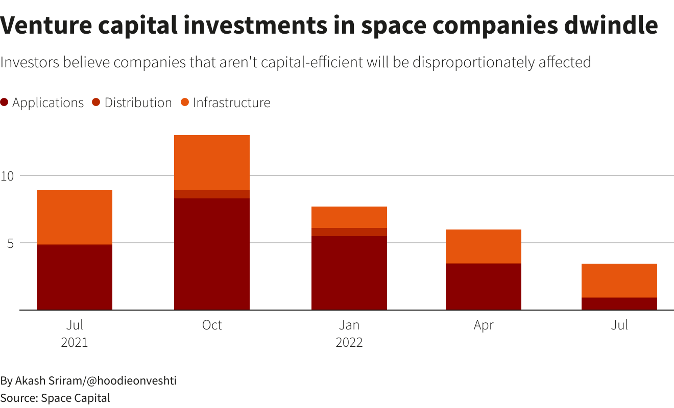 Reuters: Space technology startups are being forced to limit their sky-high ambitions, as their venture-capital backers turn to safer bets due to the current economic turmoil, VC firm Space Capital said.